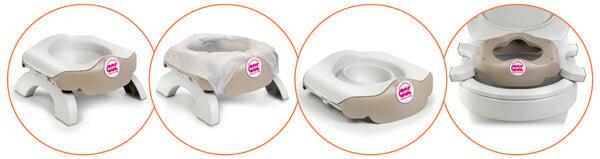 Çocuğunuzun ihtiyacına göre oturaktan klozet adaptörüne kolayca dönüştürülebilir.
