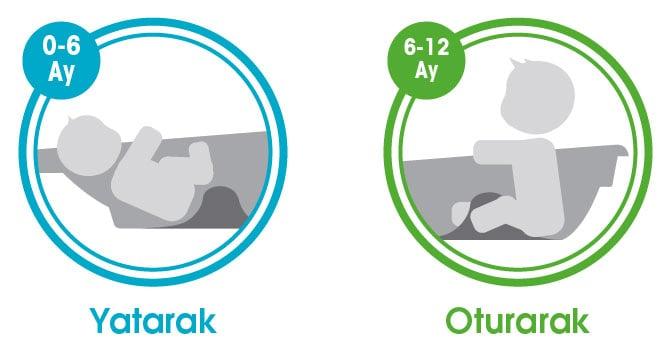 • Ergonomik ve yenilikçi tasarım • Bebek için maksimum konforu sağlayan rahat banyo deneyimi • Çift taraflı kullanım: 0/6 ay yatarak ve 6/12 ay oturarak