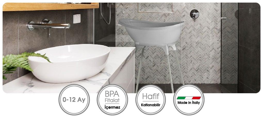 Bebeğe doğru duruş desteği vermeyi garanti eden ergonomik tasarımlı Bella küvet, Kompakt ve hafiftir. Kaymaz ayaklı katlanabilir küvet taşıyıcı (ayrı satılır) sayesinde küveti kullanmak istediğiniz her yerde sabit bir destek sağlar.