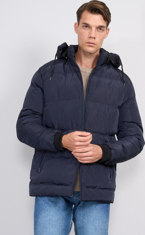 Oker 400 Lacivert Erkek Kapüşonlu Astarlı Dolum Mont