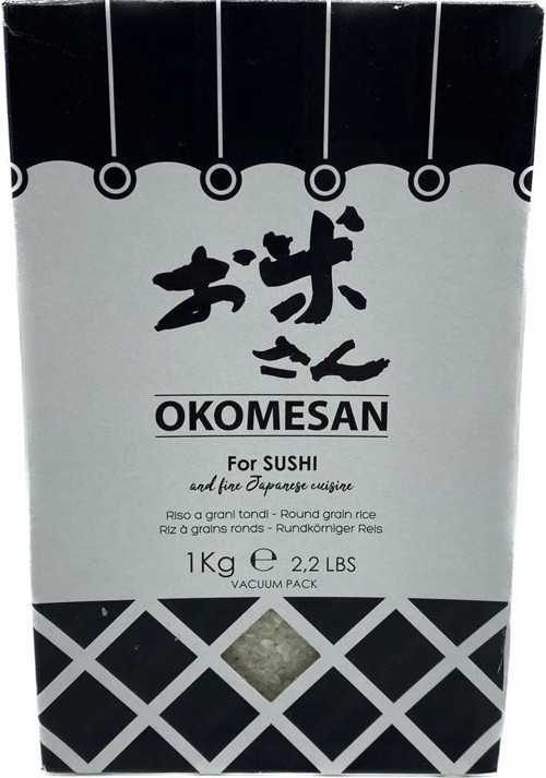 - Yüksek kaliteli OKEMESAN marka sushi pirinci, 1 kg paket boyutuyla sunulur.
