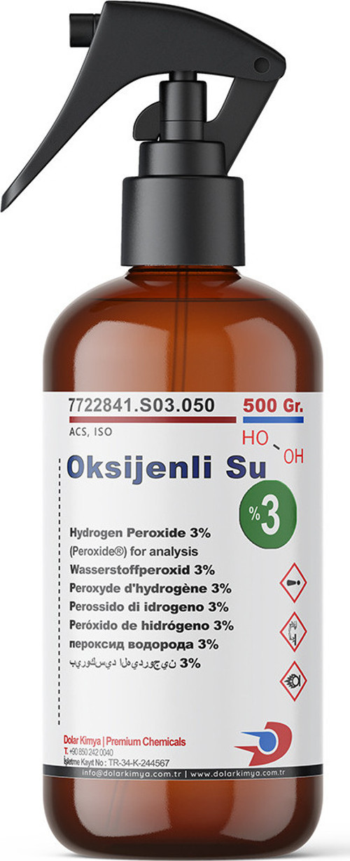 Oksijenli Su %3 Sprey Başlıklı | 0.50 Kg (Hidrojen Peroksit)