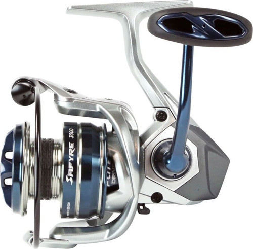 Sert işlenmiş alüminyum sap, sağlam ve sallantısız bir geri alma için doğrudan gövdeye vidalanır. İki tonlu anodize makarası dayanıklılık ve temiz bir görünüm ekler. Safyre, 1000'den 5000'e kadar boyutlarda mevcuttur ve belirli boyutlarda yüksek hızlı seçenekler sunar.