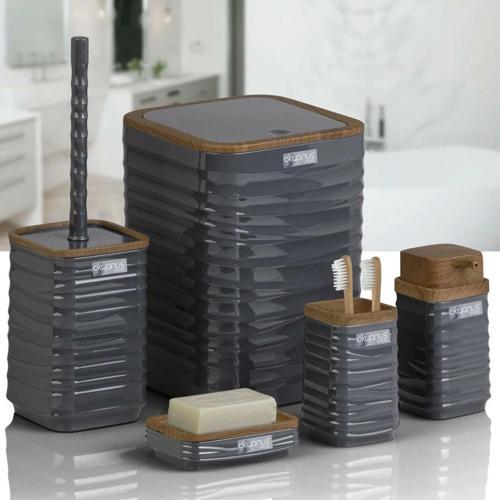 Okyanus Home Luna Antrasit Ahşap Desenli Kare 5'li Banyo Seti