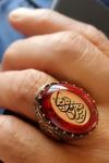 Ol der ve olur Arapça yazılı kehribar gümüş erkek koleksiyon yüzük