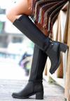 Butik Jeoni Siyah Cilt Topuklu Çizme