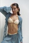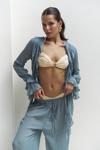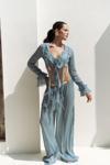 Yüksek bel, beli bağcıklı ve transparan palazzo pantolon.