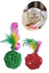 OLLEVRA 2li Rattan Renkli Peluş Tüy Kedi Köpek Oyuncak Yakalama Çiğneme Çıngıraklı Top Oyuncağı