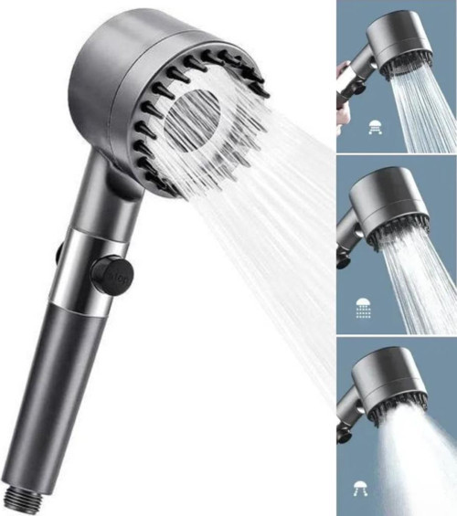 Ollevra 3 Kademeli Duş Başlığı Turbo Basınçlı Masaj Başlıklı Silikon Fırçalı – Yüksek Basınçlı Su Tasarruflu