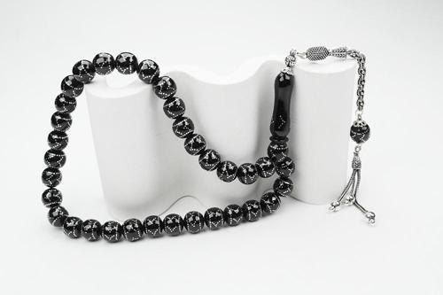 Ürün Adı : Oltu Taşı Küre Çember Yön İşlemeli Tespih