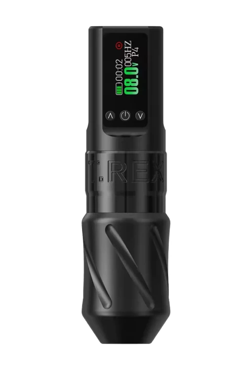 Dayanıklılık ve hassasiyet için tasarlanan T-Rex, uzun ömürlü bataryası ve sağlam 9000 RPM motoru ile kesinti süresini en aza indirir. Alaşım yapısı ve 3.5 mm strok, tutarlı iğne derinliği ve pürüzsüz hatlar sunarak iş akışını ve müşteri konforunu artırır—güçten ödün vermeden taşınabilirlik arayan yoğun sanatçılar için idealdir.