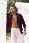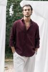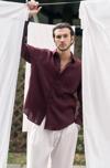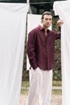 Oversize kesim, klasik yaka keten karışımlı erkek gömlek. Çift düğmeli manşetli uzun kol. Ön düğme kapamalı.
