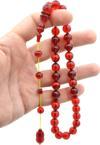 Ömer Mekik İmzalı Küre Kesim Kırmızı Ateş Kehribar Tesbih USTA İŞİ TAKIMLI SİSTEMLİ GÜNLÜK ÇEKİME UYGUNDUR TANE EBADI: 10.5*11 MM İMAME BOY: 3.4 CM TOPLAM BOY: 36 CM Ürünlerimiz doğal olduğu için renk tonlarında küçük farklılıklar olabilir.