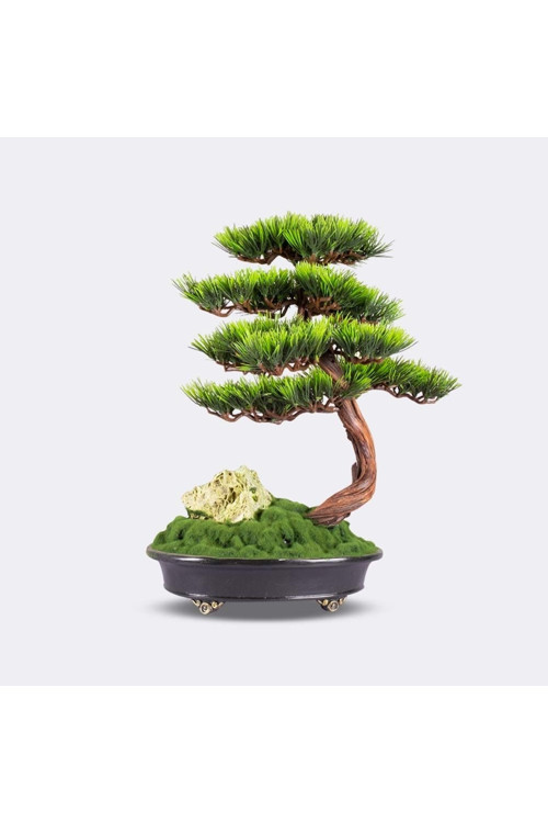 Astrea Thuja - Masaüstü Kullanıma Uygun Doğal Ağaç Gövdeli Mini Yapay Bonsai Ağacı - 42X50 Cm