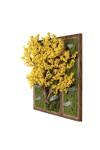 Omnia Concept Üçlü Jasmine Tablo - Sarı - Masif Ahşap Çerçeveli 3 Boyutlu Yapay Ağaç Tablosu 125X100 Cm