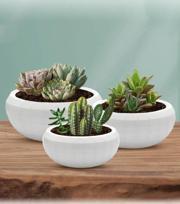 Omnipazar Dekoratif Aranjman Kaktus Sukulent Saksı 3'lü Set Beyaz