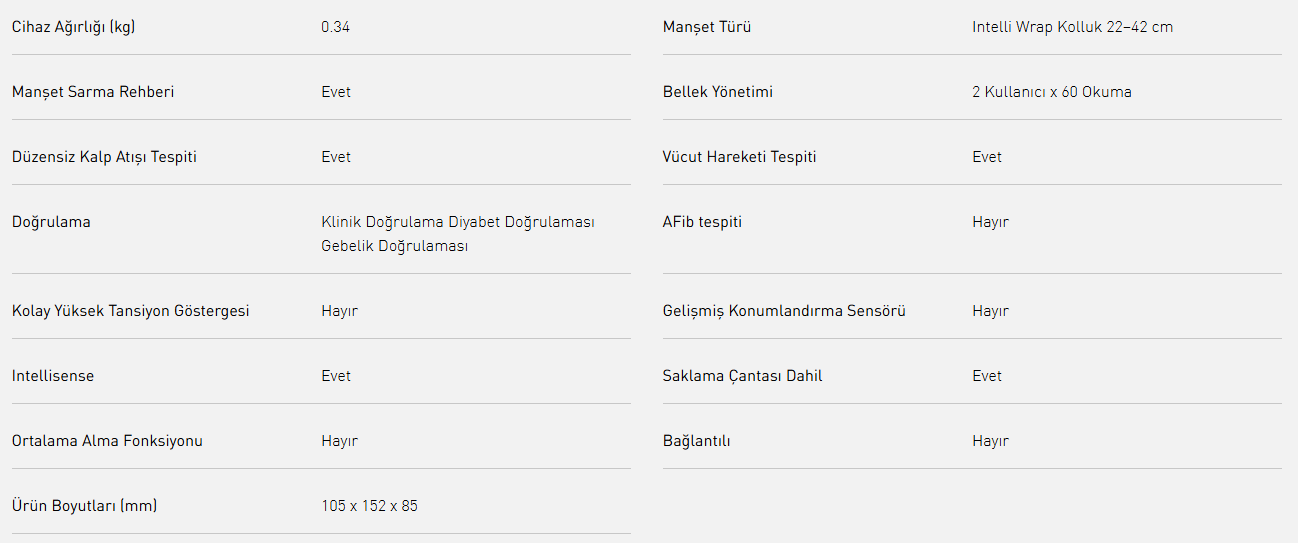 OMRON M3 Comfort, tansiyon ölçümünüzden kolayca doğru sonuç alabilmenizi sağlayan Akıllı Manşet’e sahiptir. Tansiyon ölçümü sırasında, düzensiz kalp atışı tespiti yapabilir. Ayrıca, 2 farklı kullanıcı için tansiyon ölçüm sonuçlarını depolayabilir ve bireysel olarak kendi ölçüm sonuçlarınızı ve gidişatınızı takip etmenize olanak sağlar.