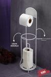 Sas Haus Ömür Boyu Paslanmaz Ayaklı Wc Kağıtlı Yedek Kağıt Hazneli Tuvalet Kağıtlığı Yuvarlak Kristal Beyaz