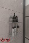Elista Ömür Boyu Paslanmaz Yapışkanlı Krom 2 Katlı Düz Banyo Şampuanlık Delmeye Son, Matkap Vida Yok