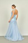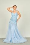 Detay: Askılı, yarım balık form, taş ve çiçek işlemeli, uzun, astarlı, abiye elbise;