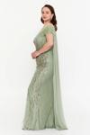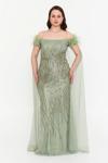 Detay: Işıltılı pul ve payet işlemeleriyle göz kamaştıran bu maxi boy abiye elbise, balık form kesimiyle vücut hatlarını zarifçe vurgularken; tül kumaşı ve pelerin detayıyla asil bir duruş sergiler. Astarlı yapısı sayesinde konforlu bir kullanım sunan bu tasarım, özel davetlerde hem gösterişli hem de sofistike bir stil arayanlar için ideal bir tercihtir. Sahne ışıklarını üzerinize çekecek bu elbise, her adımda zarafetinizi taçlandırır.;
