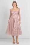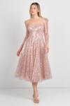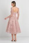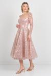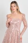 Detay: Uzun kollu, tül kumaş üzerine full pul payet işlemeli midi abiye elbise, sabit kolları ve kare yaka kesimiyle modern bir duruş sergilerken, göğüs kısmındaki hayal tül detayıyla sofistike bir şıklık sunar. Astarlı yapısı sayesinde konforlu bir kullanım sağlayan bu model, ışığı yansıtan payetleriyle her ortamda dikkat çeker. Özel davetlerde, kokteyllerde ya da yılbaşı gecelerinde göz alıcı bir stil arayanlar için ideal bir tercihtir;