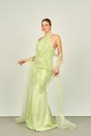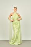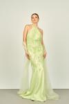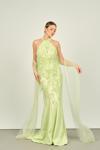 Ömür İnn Ömür Inn Kadın Halter Yaka Boncuk İşlemeli Sırt Detaylı Balık Form Abiye Elbise 4298 Elma Yeşili