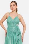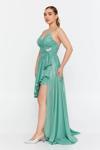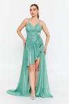 Detay: Zarif şifon kumaşıyla tasarlanan bu maxi boy abiye elbise, ip askılı ve kolsuz yapısıyla feminen bir siluet sunarken; sırt detaylarıyla cesur bir dokunuş kazandırır. Eteğindeki fırfır tasarımı ve yırtmaç detayı, hareketli ve romantik bir hava yaratırken, astarlı yapısı sayesinde konforlu bir kullanım sağlar. Özel davetlerde hem zarif hem etkileyici görünmek isteyenler için ideal bir seçimdir;