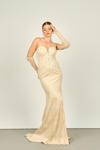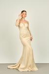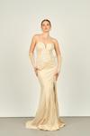 Ömür İnn Ömür Inn Kadın Kalp Yaka Üst Kısım Taş İşlemeli Seyyar Kollu Balık Form Abiye Elbise 4240 Ten