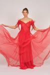 Ömür İnn Ömür Inn Kadın Kol Detaylı Uzun Abiye Elbise 6452161 Kırmızı