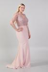 Detay: Alt etek krep kumaş, üst beden payetli, işlemeli, sırt detaylı, astarlı abiye elbise;