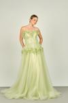 Detay: Göğüs ve basen kısmı çiçek süslemeli, üst kısım payetli ve korsaj, etek tül ve salaş , sırt detaylı, astarlı abiye elbise;