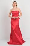 Ömür Inn Kadın Straplez Fiyonk ve Kuyruk Detaylı Abiye Elbise 4244 Kırmızı