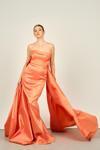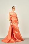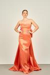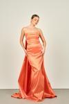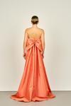 Detay: Sırt dekolteli, fiyonk ve kuyruk taş işlemeli yırtmaçlı, astarlı, uzun abiye elbise;