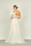 Detay: Derin yırtmaçlı, seyyar kollu, sırt detaylı, taş işlemeli, uzun, astarlı abiye elbise;