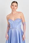 Ömür İnn Ömür Inn Kadın Straplez Taş İşlemeli Uzun Abiye Elbise 0396 Kraliyet Mavisi