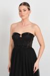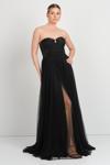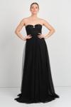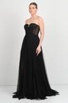 Detay: Üst kısmı taşlı, payetli ve transparan, alt kısmı tül etekli, derin yırtmaçlı, astarlı, fermuarlı, yarı kabarık ve uzun abiye elbiseler, ihtişamı ve zarafeti bir araya getirerek özel davetlerde göz kamaştırıcı bir görünüm sunar. Transparan ve taşlı üst kısmı sofistike bir hava katarken, payet detayları ışıl ışıl bir etki yaratır. Tül etek, hafif ve akıcı bir siluet sağlarken, derin yırtmaç cesur ve etkileyici bir dokunuş ekler. Astarlı yapısı konfor sunarken, fermuarlı tasarım pratik kullanım sağlar. Yarı kabarık formu elbiseye hacim kazandırarak asil ve gösterişli bir duruş sergiler. Bu tasarım, hem klasik hem de modern bir tarzı yansıtarak özel günlerde unutulmaz bir stil oluşturur;