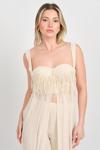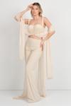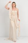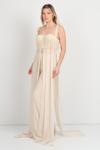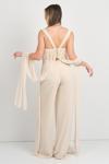 Detay: Alt kısmı akışkan şifon kumaştan, üstü taş işlemeli ve askılı büstiyer formunda tasarlanmış iki parçalı abiye tulum, kuyruk detayıyla ihtişamlı bir stil sunar. Zarif taş süslemeleriyle dikkat çeken üst parça, modern kesimiyle feminen bir siluet oluştururken; rahat ve şık duruşuyla mezuniyet, nişan veya özel davetlerde stil sahibi bir görünüm sağlar. Şifonun zarafetiyle birleşen bu özel tasarım, iddialı ve farklı bir alternatif arayanlar için öne çıkan bir seçenektir;