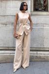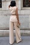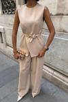 - Yetişkin kadınlar için özel olarak tasarlanmış, şık ve zarif bir görünüm sunar.; - Uzun boy kesimi ile modern ve feminen bir siluet oluşturur.; - Regular kalıp sayesinde rahat bir kullanım sağlar ve vücut hatlarını nazikçe sarar.; - Dokuma kumaş tipi, dayanıklılığı ve konforu bir arada sunarken, düz deseniyle sade ve şık bir görünüm kazandırır.; - TR menşeli olup, yerel üretim kalitesini yansıtır.; - 30 derecede makinede yıkanabilir olması pratik kullanım imkanı tanır; beyazlatıcı ve kurutucu kullanımı önerilmez, düşük ısıda ütü ile bakımı kolaydır.; - Tekli paket içeriğiyle yelek ve pantolon olmak üzere iki parçadan oluşur; çift cepli tasarımı fonksiyonellik sağlar.; - Yuvarlak yaka tipi ile klasik ve zamansız bir stil sunarken, casual ortamlarda rahatlıkla tercih edilebilir.; - Geniş paça tasarımı modern ve rahat bir yürüyüş deneyimi sunarken,