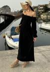 Now Moda Omuz Lastikli Gipeli Uzun Kol Siyah Elbise %100 Pamuk doğal kumaştan üretilen baskı detaylı bu harika elbise, şık tasarımıyla kalbinde taht kuracak! Rahat yapısı ile çok şık bir tasarıma sahip renklerin harika uyumundan oluşan bu modelimiz, beğenini kazanacaktır. Nefes alabilen esnek kumaştan üretilmiştir. Kalıp normal tam kalıptır.