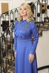 Lara Kemerli Saten Tesettür Abiye Saks - Image 1