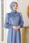 Sim Detaylı Efsane Tesettür Abiye Elbise - Image 1