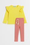 Kız Çocuk Fırfır Detaylı Ribana Taytlı Takım