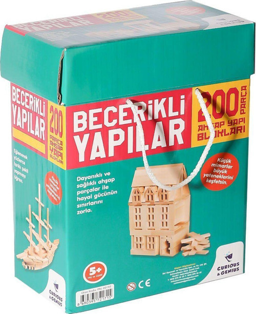 ZMK-00195 Becerikli Yapılar 200 Parça Kız Erkek Çocuk Oyuncak Eğitici Oyuncaklar 200 Parça ahşap bloklar