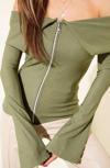Omzu Açık Fermuarlı Bluz haki T4330, feminen ve şık bir görünüm arayan kadınlar için ideal bir seçenektir.