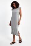 Kallima Mürdüm Mor Vücuda Oturan Kolsuz Diz Altı Fitilli Esnek Kaşkorse Elbise - Image 1