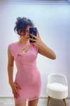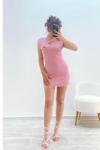 Ön Dekolteli Astarlı Tül Mini Elbise Pembe