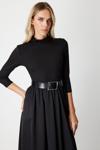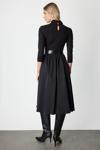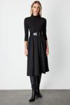 Detay: Sıfır yaka tasarımı ve uzun kollu formuyla zarif bir siluet sunan bu dokuma kumaş elbise, fermuar kapaması ve kemer detayıyla modern bir şıklık vadediyor. Astarsız yapısı sayesinde hafiflik sunarken, bel kısmındaki kuşak detayı vücut hatlarını zarifçe vurgular;