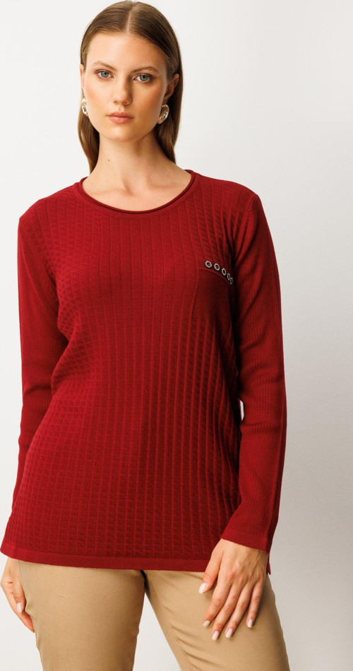 On Kadın Büyük Beden İnci Detaylı Triko Kazak 65371 Bordo - Image 1