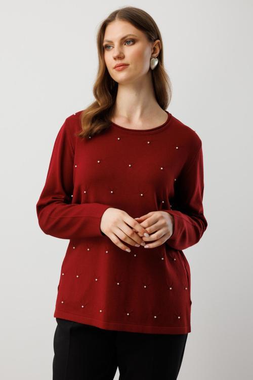 Kadın Büyük Beden İnci Detaylı Triko Kazak 65371 Bordo